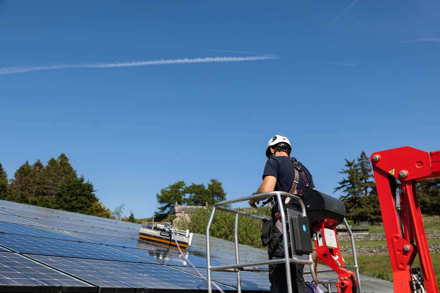 We wouldn’t recommend it for commercial installations. Working at height carries serious risks, and using incorrect cleaning methods or too much pressure can damage panels or invalidate warranties. Our team has proper training, insurance, and equipment to access and clean panels safely – whether they’re on a barn roof or a ground-mounted array next to your cattle.